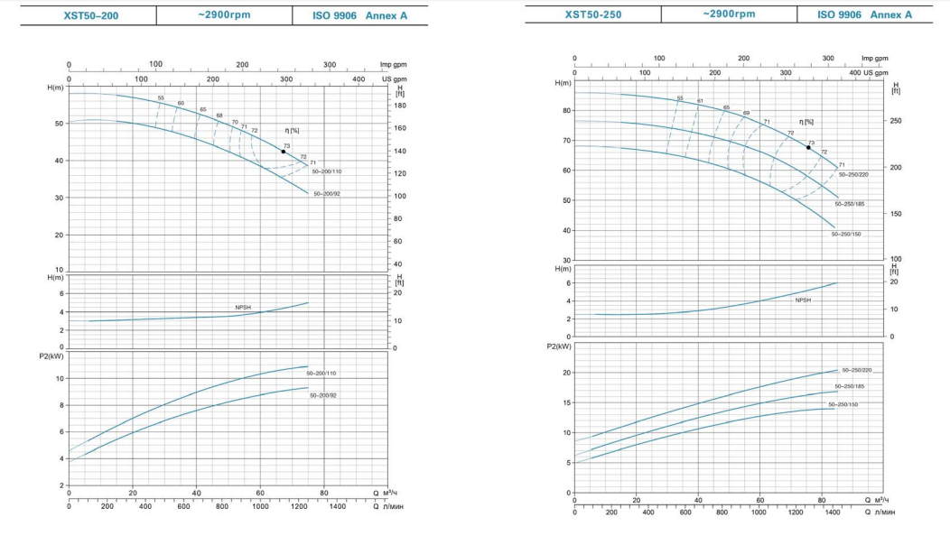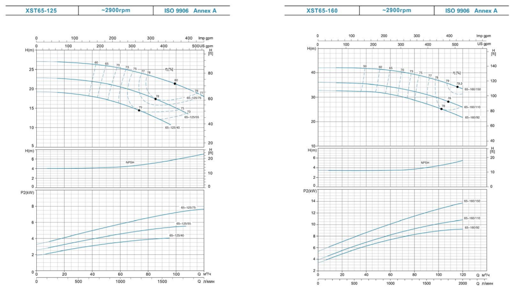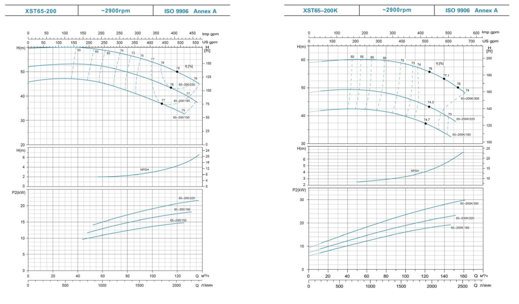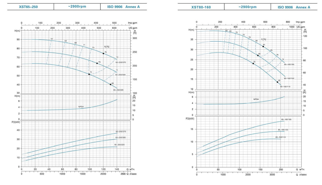 Рабочие условия для стандартных центробежных насосов XST:
