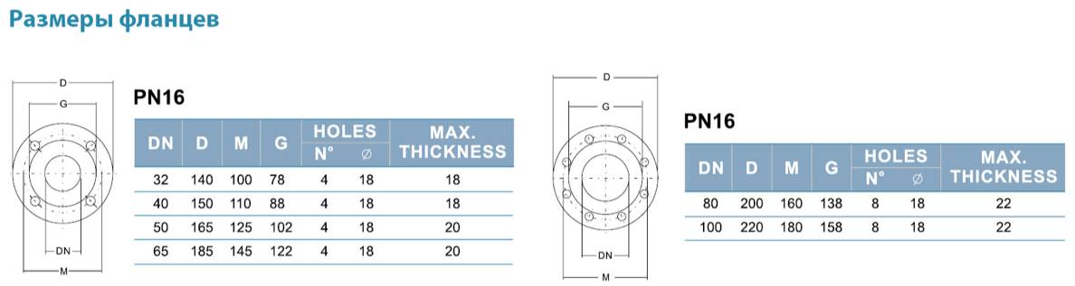 Фланцы соответствуют стандартам UNI 2236 и DIN 2532