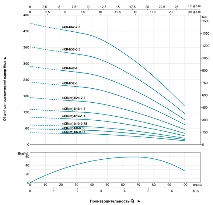 Напор до 174 м.